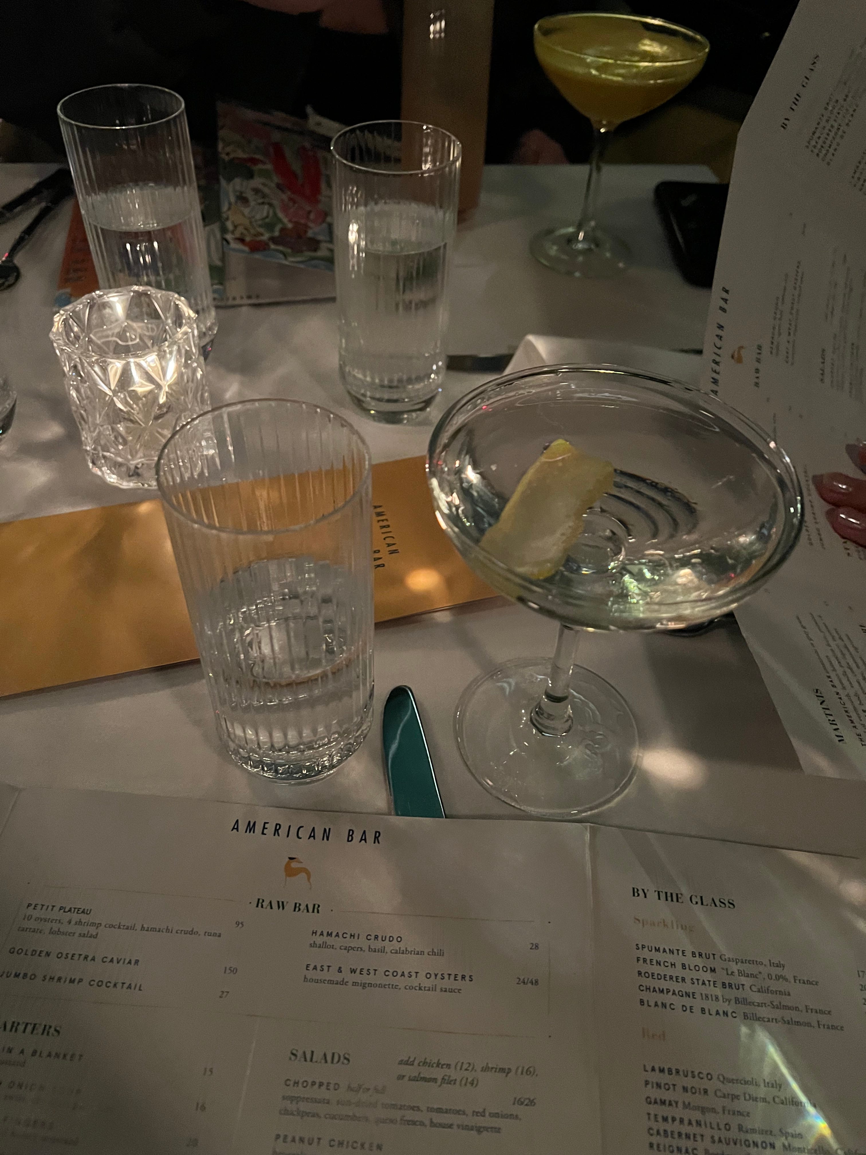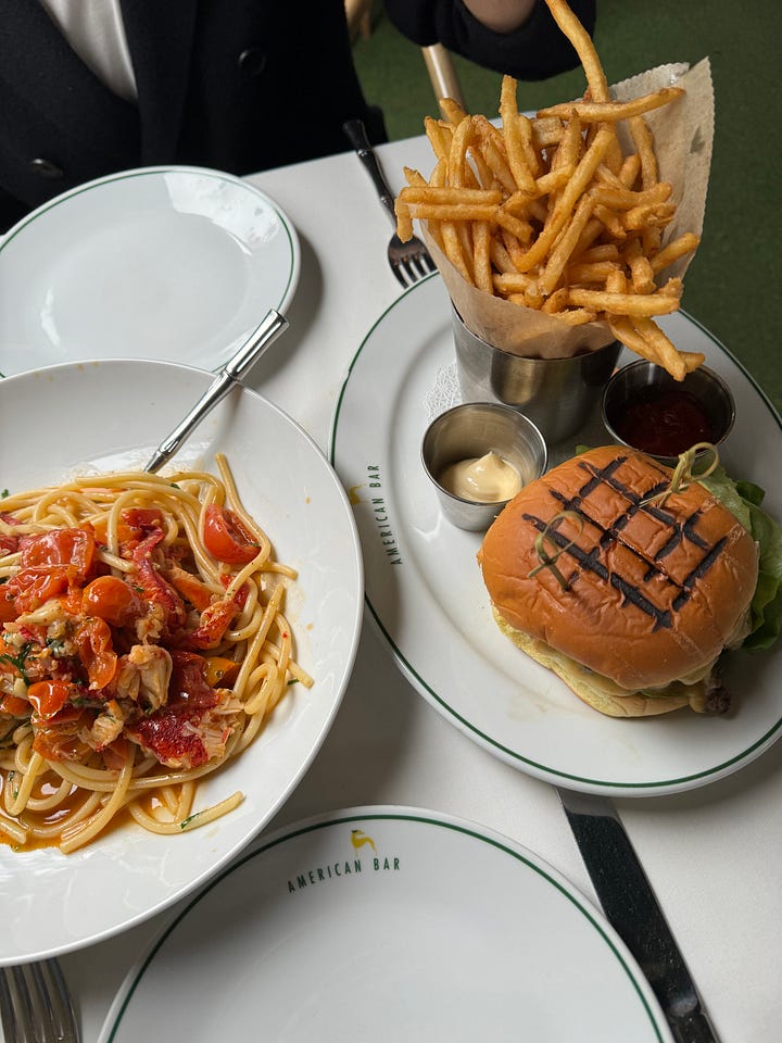 Not only does American Bar have a wonderful ambiance that makes everything from a visit from friends out of town to a regular Monday night feel extra special, but the food and drinks are excellent (and well… thematically pricey… but it’s alright). If I’m drinking, I get the American Bar martini. It’s a classic done well, a theme for the rest of American Bar’s offerings.