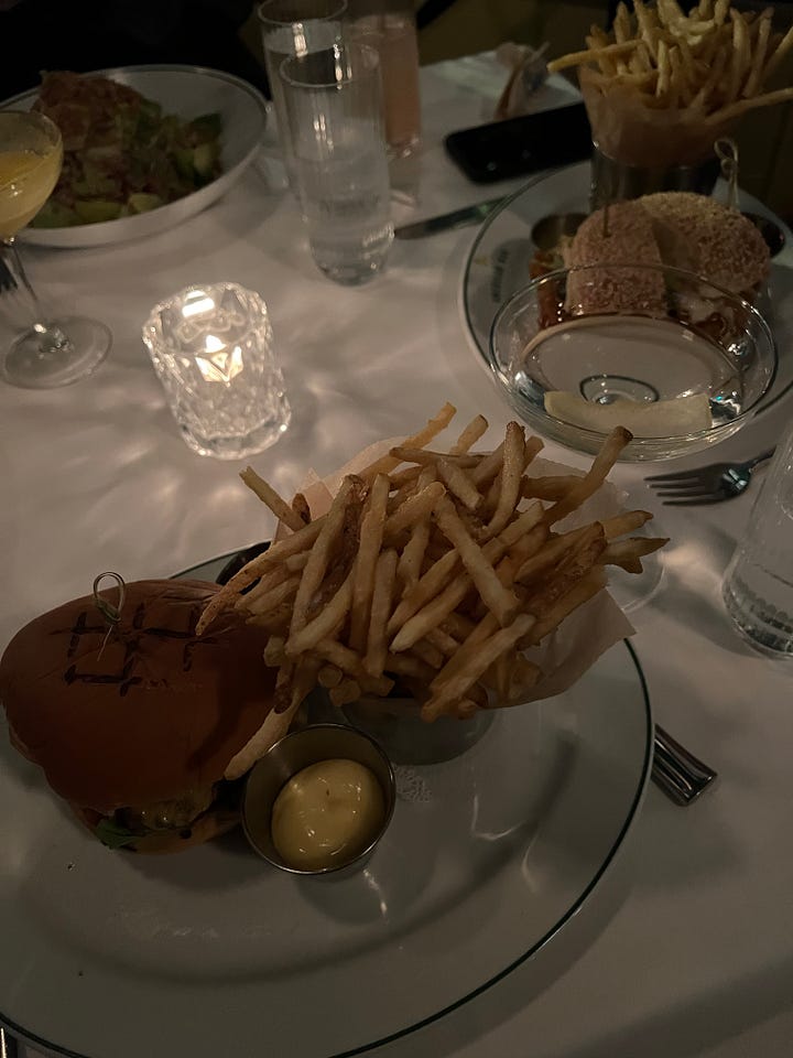 If you’re visiting for a full meal, however, I recommend going on a Monday for their french dip weekly special—instead of the normal au jus, it’s served with a peppery au poivre sauce. On any other day, however, the cult-favorite peanut chicken salad is a favorite for a reason, and the spicy lobster pasta has an addictive heat and is surprisingly not overrated. American Bar’s cheeseburger is popular, but the last time I ordered it, I found it mushy and uninteresting. It’s not a bad burger, but I’d skip it and get something else.