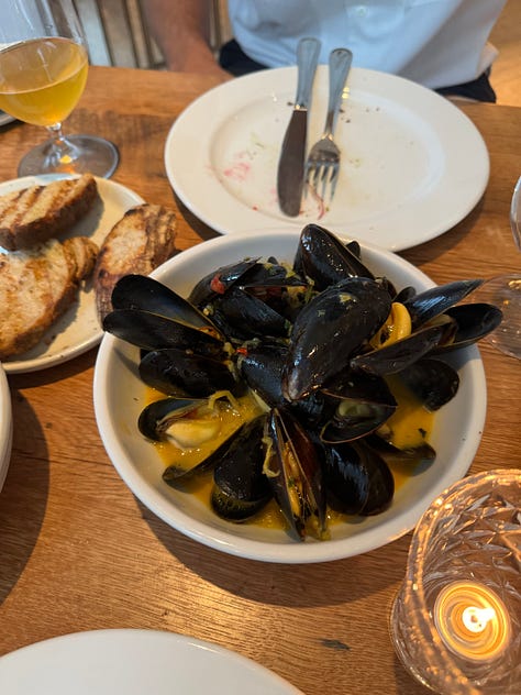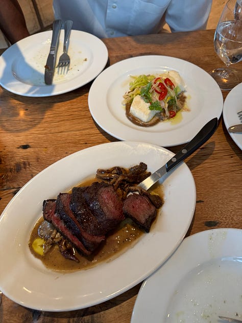 We ate mussels cooked with saffron, white wine, garlic, shallot, chili and parsley, dipped (once again) slides of toasted sourdough greedily into the sauce. The oyster mushrooms covered in tarragon butter and lemon were so simple yet the dish elegantly showcased the produce. We shared the poached halibut, with black garlic aioli, romano beans, shallot and fresno chili, and the wagyu picanha, with mushrooms, red wine and crème fraîche. Once again, these mains were simple, putting the protein front and center. I suspect that perhaps the dishes’ simplicity was due to it being a temporary pop-up and kitchen, but I also think the original Gjelina in LA thrived on just letting ingredients be themselves.