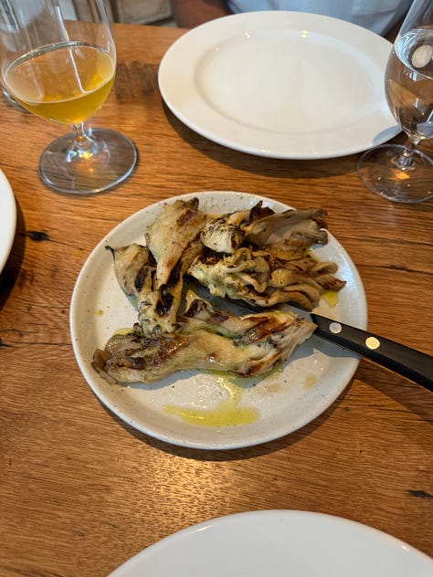 Not too important to this food-centric story I’m telling, but the vibe inside WSA was indeed retro and weird. But the dining space that Gjelina was operating out of had great views—throughout our dinner I watched the crowd slowly arrive at Pier 17 and boats going by in the East River.