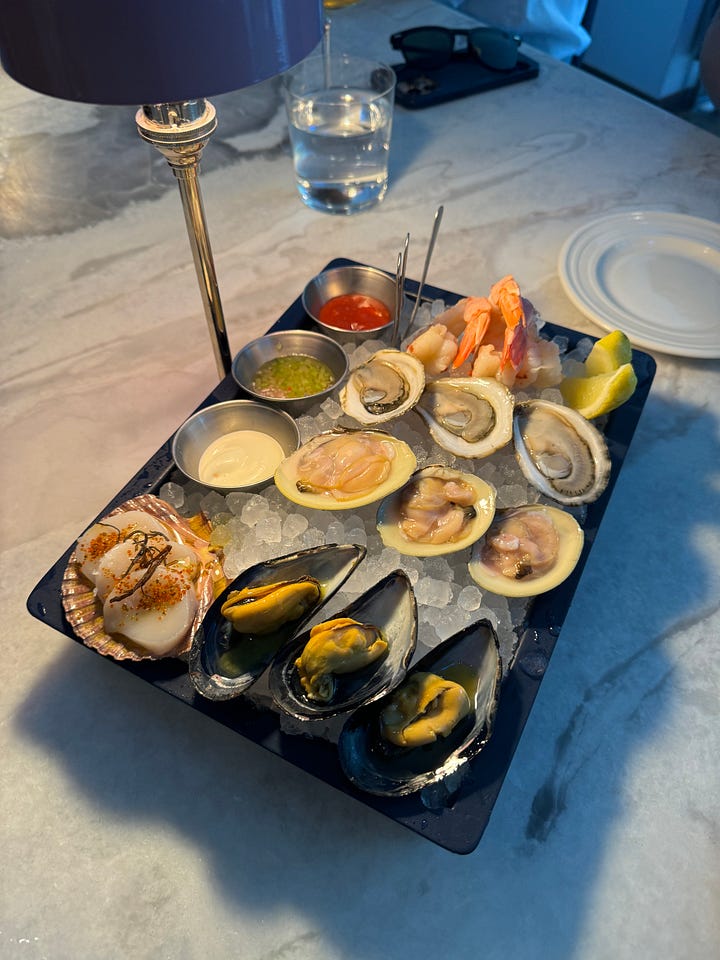 Having said that, there’s nothing like being with the OGs, the people that saw me through my high school flannel shirt phase, and I’m so lucky that so many of them have ended up in the same city as me. Last week, fresh off of a lovely summer Friday spent seeing the Paul Klee exhibition at David Zwirner (it’s really good and closes this weekend!), I joined Viraj and Aiden at Penny, the raw bar that opened earlier this year above the buzzy East Village wine bar Claud.