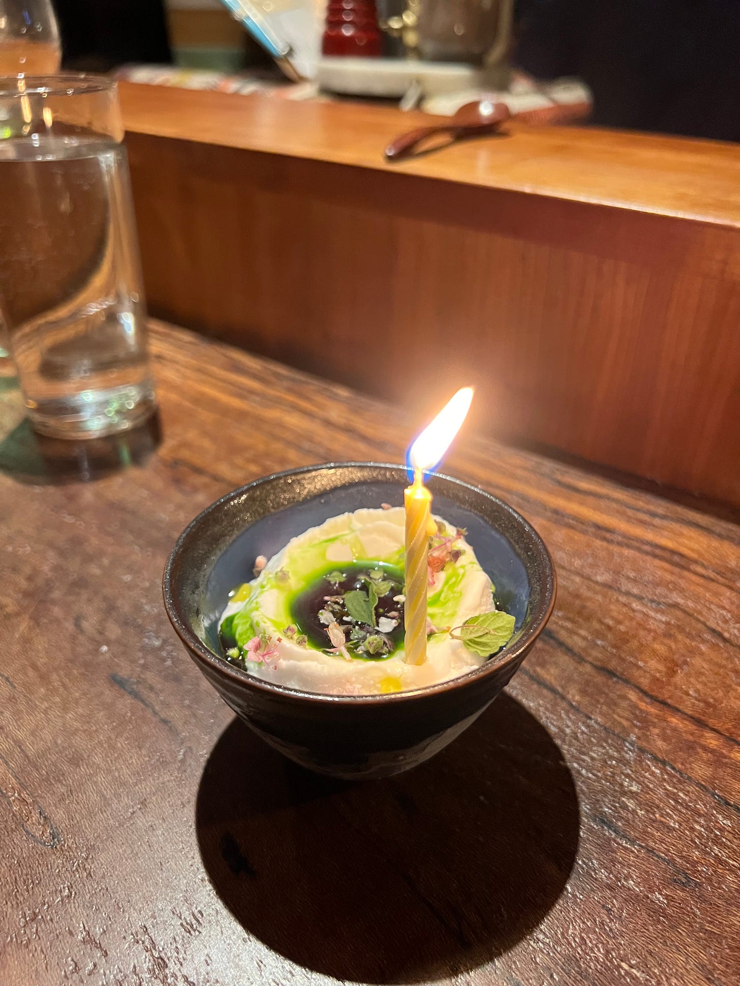 I first ate at Rosella in January 2023 (pre-OMB!) on the recommendation of my friends Talia and Neeraj. It was Viraj’s birthday, and if my camera roll from back then is any indication, it seems like all we did that week was eat. I only took one photo—a birthday candle sticking out of their sorbet, the flavor lost to time—but it then became the one restaurant I evangelized over and over again.