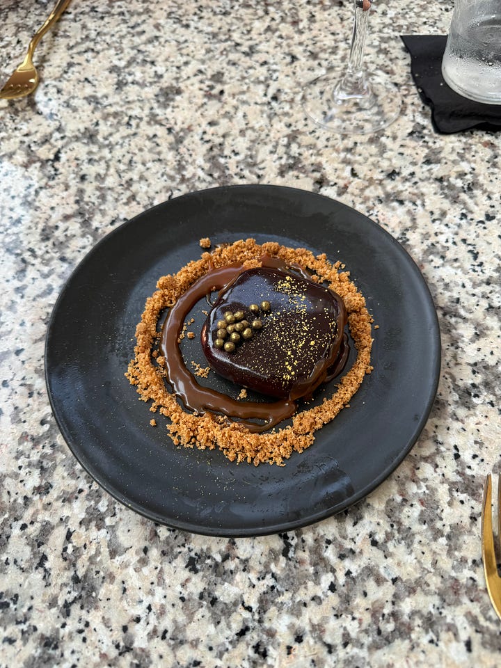 Tatiana’s food has been covered extensively, so I’ll spare you all the exact play by play of our meal. Besides, the sneaky brilliance of Tatiana’s food stays consistent across each bite—it’s not a restaurant that’s there to put on a whole show, to turn tomato water into “caviar” or freeze foie gras and then shave it tableside on your dish. Nothing comes to your table on fire, pasta isn’t tossed in a giant wheel of cheese as your entire table records it, flash on. (Are people still doing that?) Instead, Tatiana’s dishes are elegant yet hearty, elevated takes on New York City classics and Afro-Caribbean foods that look approachable but taste like they should be displayed at a museum.
