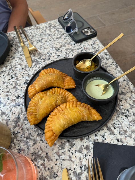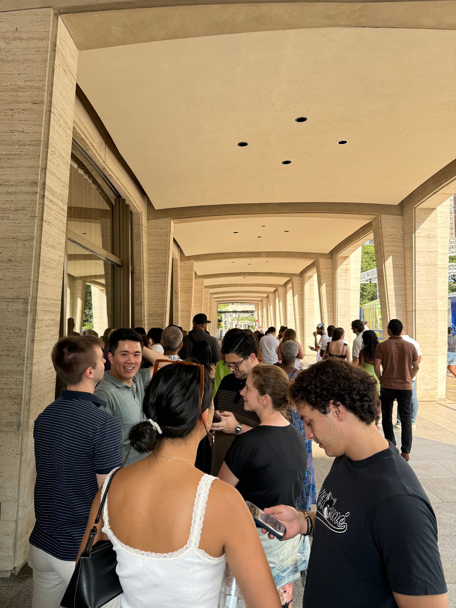 And it really seemed like he wasn’t going to let it go until I gave in, so a few weekends ago Viraj, Aiden and I headed uptown to catch a movie at the Lincoln Square AMC on a Saturday afternoon, with an ambitious plan to have dinner at Tatiana after. One arduous movie later (bet you can guess which one!), and we were speed walking down Broadway, arriving in line at 4:45 p.m., 15 minutes before Tatiana opened. Based on this Resy interview with the Tatiana team, I knew that they had 32 seats on the patio, and an approximate count told me that we probably had around thirty people in line ahead of us. It was looking dicey.