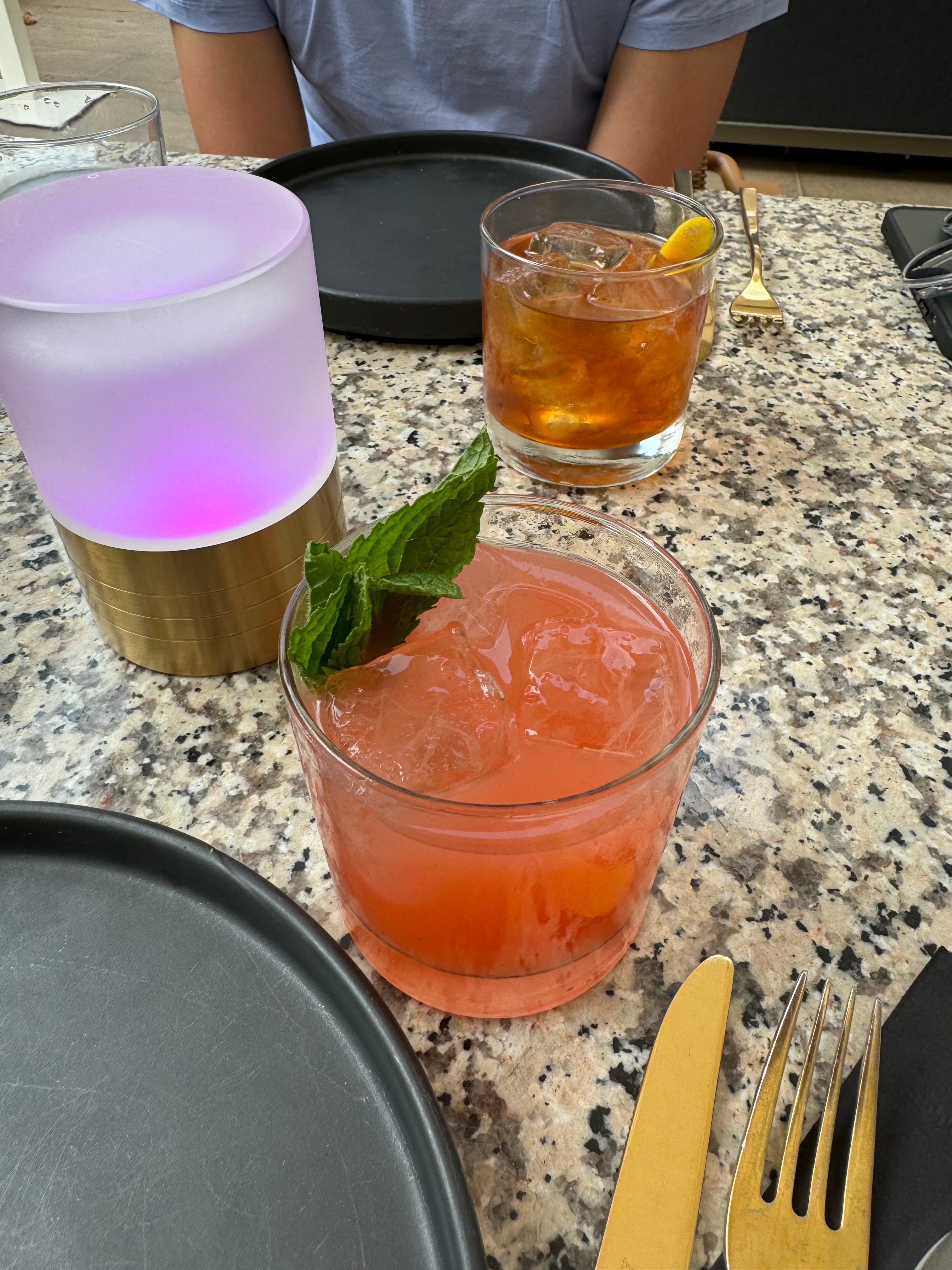 Standing in the New York July heat, we were grumpy (and sweaty) by the time we made it to the front another fifteen minutes later, but then all at once we were ushered to the host stand and then briskly through the restaurant, past the iconic cloud-shaped lamps and into the patio. At 6 p.m. we were comfortably seated—I was sinking into a very plush outdoor couch—with drinks in hand. I had their version of a spicy margarita: tequila, lime, almond orgeat, jalapeño and aji amarillo. Hip-hop blasted from hidden speakers as we marveled at our luck.