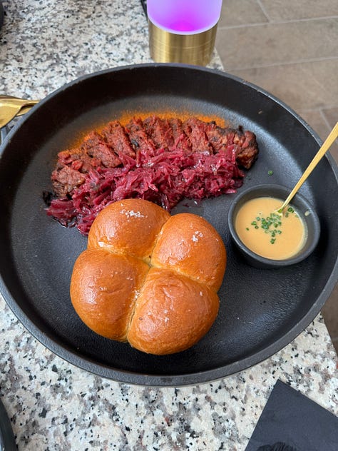The dishes at Tatiana that everyone talks about are indeed stellar, and my favorites of the evening. The curried goat patties are incredibly, impressively flakey and I loved pairing bites of it with the mango chutney. The short rib pastrami suya was as good as everyone has been saying—the true star of the menu. The meat melts in your mouth, and there might be no better bite on this earth than sandwiching it between pieces of the caraway coco bread and braised red cabbage. We ordered the cornbread and cod, which was offered as an off-menu special, and enjoyed pieces of smoked jerk cod and cornbread in a puddle of buttermilk soubise—a french onion sauce.